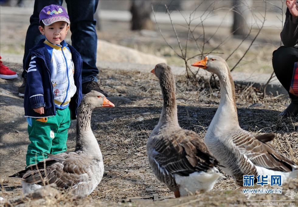 4月6日,一位小朋友在觀察大雁。當(dāng)日是清明假期的第二天,隨著氣溫轉(zhuǎn)暖,在吉林省吉林市松花江長白島棲息的大雁、野鴨活躍起來,引得市民駐足拍照。 新華社記者 張楠 攝