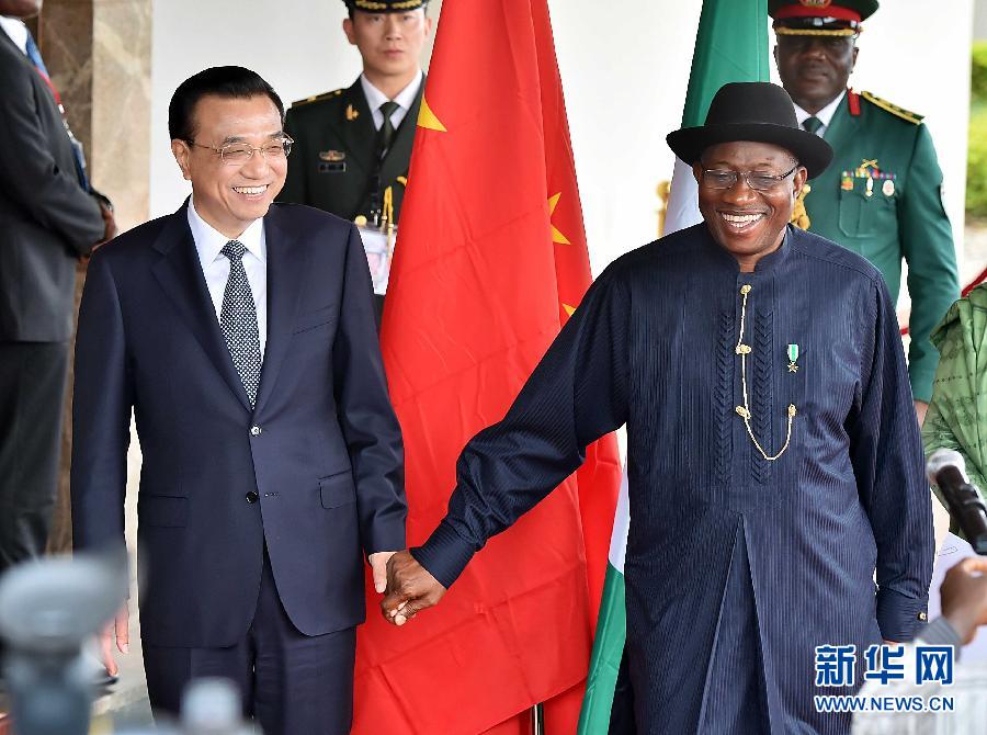 當?shù)貢r間昨天上午,尼日利亞總統(tǒng)喬納森在總統(tǒng)府為李克強總理舉行隆重歡迎儀式,現(xiàn)場鳴響禮炮,軍樂隊奏兩國國歌,李克強檢閱了儀仗隊。
