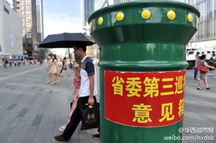 【特別郵箱】最近,在春熙路銀石廣場附近出現(xiàn)了一個特別顯眼的綠色郵箱:四川省委第三巡視組意見箱。除了可直接投遞意見信外,上面還標(biāo)有舉報電話和電子郵箱。親,今后去春熙路,除了逛街,你還能再干點(diǎn)“你懂的”事了哈!