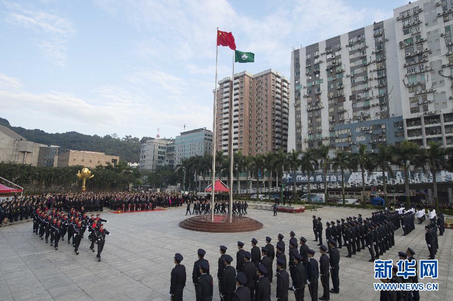 辰時(shí)。升旗。 12月20日8時(shí)許,澳門特區(qū)政府在金蓮花廣場(chǎng)舉行隆重升旗儀式,慶祝澳門回歸祖國(guó)15周年。五星紅旗和特區(qū)區(qū)旗冉冉升起。
