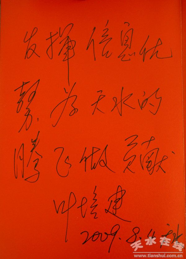 2009年8月4日,中國(guó)科學(xué)院院士、“嫦娥一號(hào)”探月衛(wèi)星總設(shè)計(jì)師兼總指揮葉培建為天水在線題詞 。發(fā)揮信息優(yōu)勢(shì),為天水的騰飛做貢獻(xiàn)。葉培建
