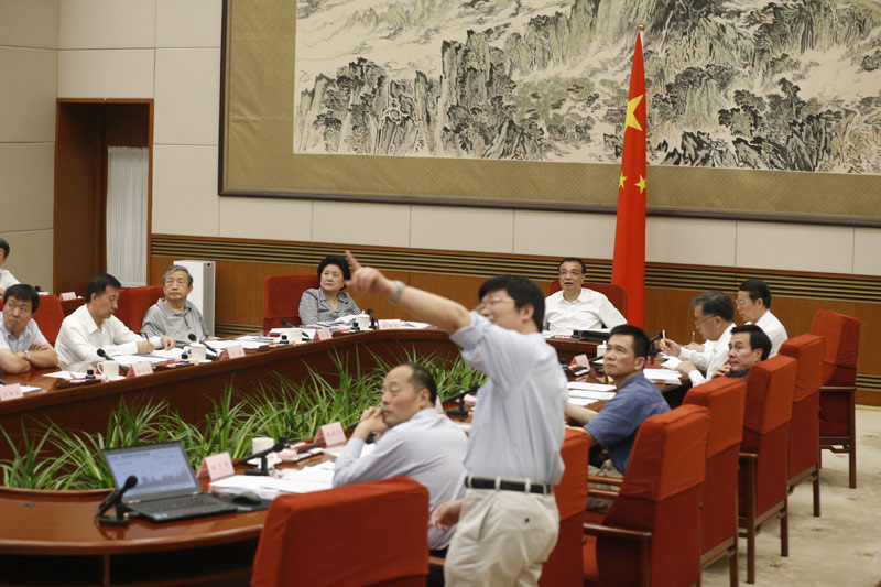 會(huì)上,姚洋、高善文、劉洪玉等專家和沈陽機(jī)床、弘毅投資、優(yōu)客工場的負(fù)責(zé)人分別圍繞結(jié)構(gòu)調(diào)整與需求管理、經(jīng)濟(jì)運(yùn)行與風(fēng)險(xiǎn)、房地產(chǎn)市場、智能制造、轉(zhuǎn)型發(fā)展、創(chuàng)業(yè)創(chuàng)新談了觀點(diǎn)。大家認(rèn)為,當(dāng)前我國經(jīng)濟(jì)總體平穩(wěn),新經(jīng)濟(jì)、消費(fèi)、服務(wù)業(yè)成為重要?jiǎng)恿,?jīng)濟(jì)轉(zhuǎn)型初見成效,但周期性和結(jié)構(gòu)性矛盾交織,需要把握好穩(wěn)增長和調(diào)結(jié)構(gòu)的平衡。李克強(qiáng)與大家深入交流。