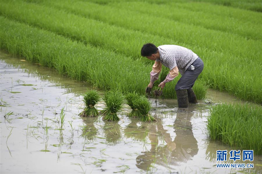 4月20日,江西省宜春市靖安縣水口鄉(xiāng)沙港村農(nóng)民在田間勞作。 當(dāng)日是二十四節(jié)氣谷雨。 新華社發(fā)(徐仲庭 攝)