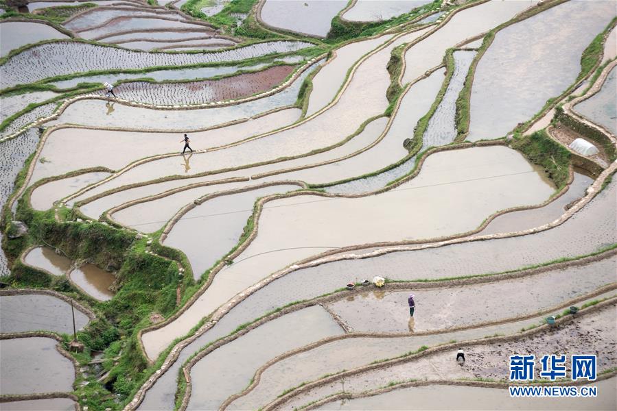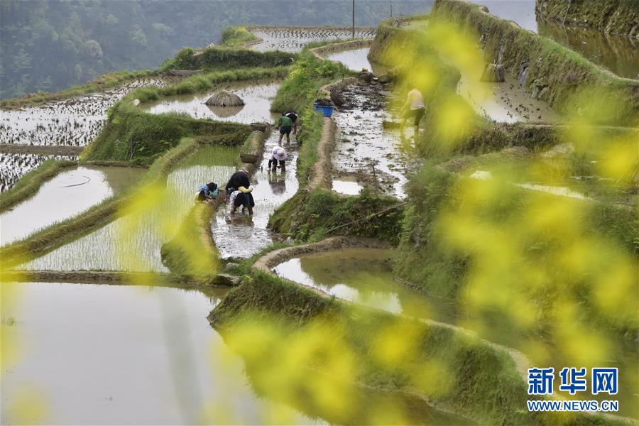 4月20日,貴州省從江縣加榜鄉(xiāng)村民在田里忙碌。 當(dāng)日是二十四節(jié)氣谷雨。 新華社發(fā)(彭澤良 攝)