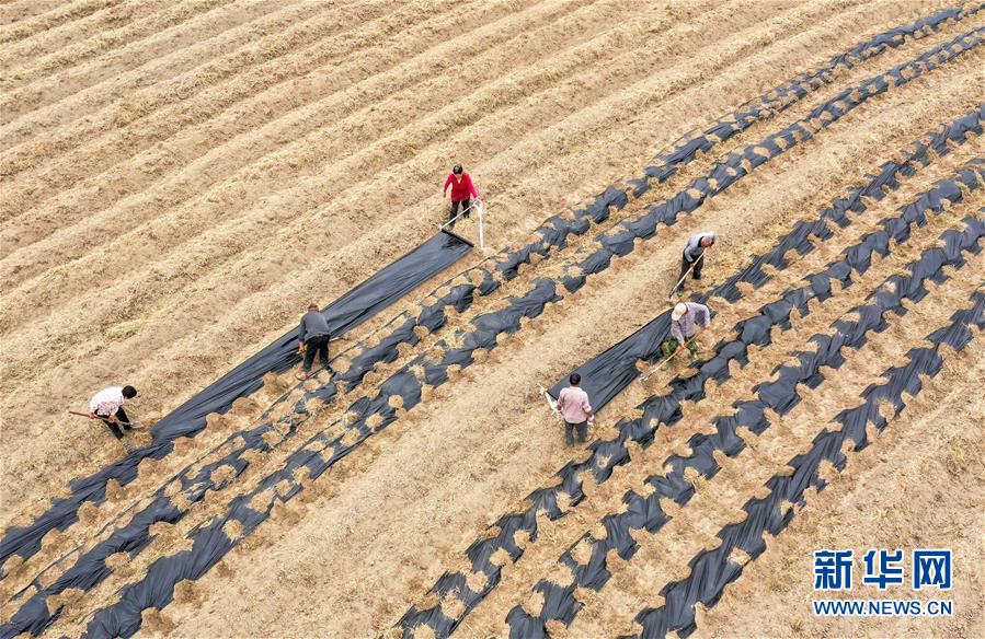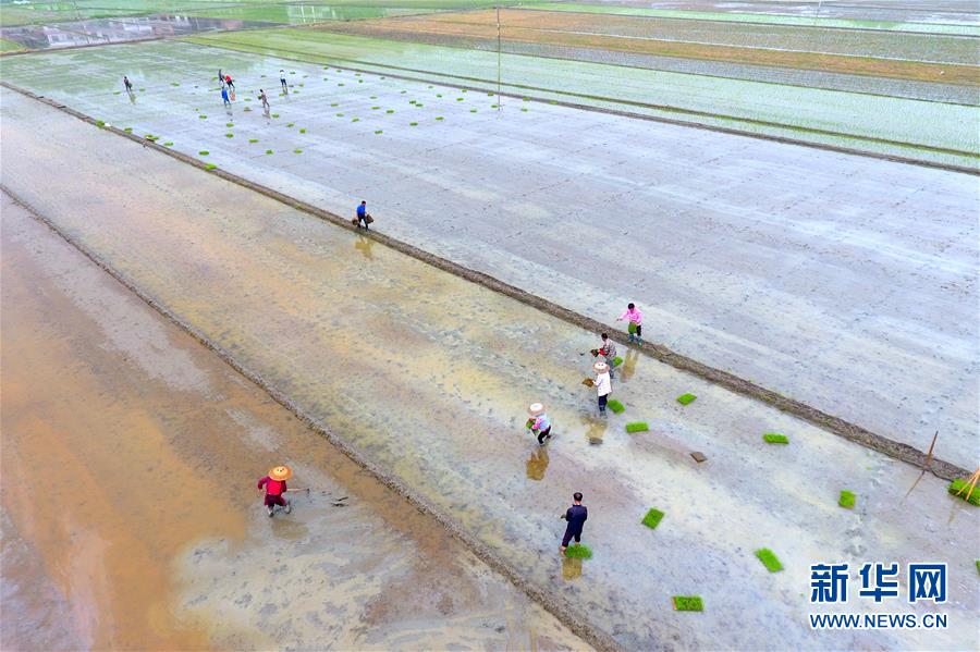 4月20日,湖南省衡陽市衡南縣寶蓋鎮(zhèn)車陂村村民在田間勞作(無人機拍攝)。 當(dāng)日是二十四節(jié)氣谷雨。 新華社發(fā)(曹正平 攝)
