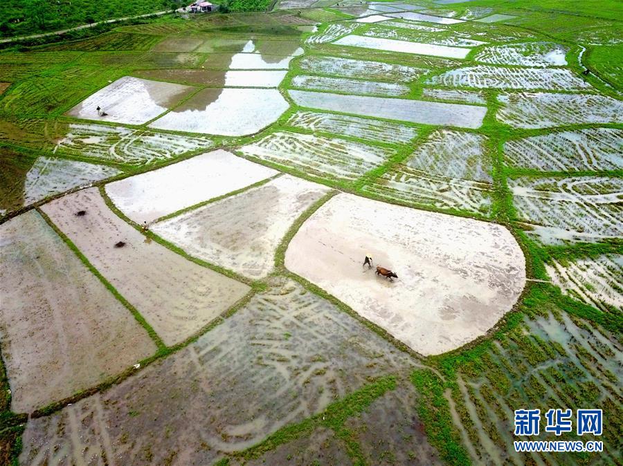 4月20日,廣西羅城縣四把鎮(zhèn)石門村農(nóng)民在田間勞作。 當(dāng)日是二十四節(jié)氣谷雨。 新華社發(fā)(蒙增師 攝)
