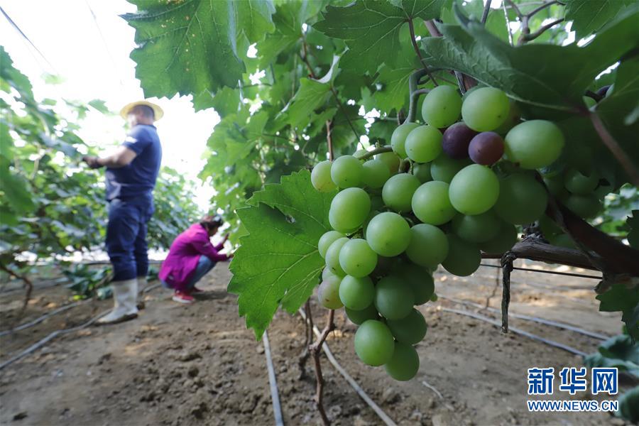 5月27日,河北唐山遵化市團瓢莊鄉(xiāng)山里各莊村農(nóng)民在葡萄園勞作。 新華社發(fā)(劉滿倉 攝)
