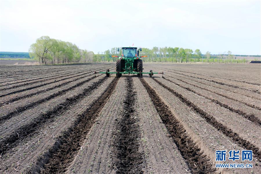 5月25日,在黑龍江墾區(qū)五大連池農(nóng)場第一管理區(qū),工人駕駛農(nóng)機在大豆田里進行土壤深松作業(yè)。 新華社發(fā)(陸文祥 攝)