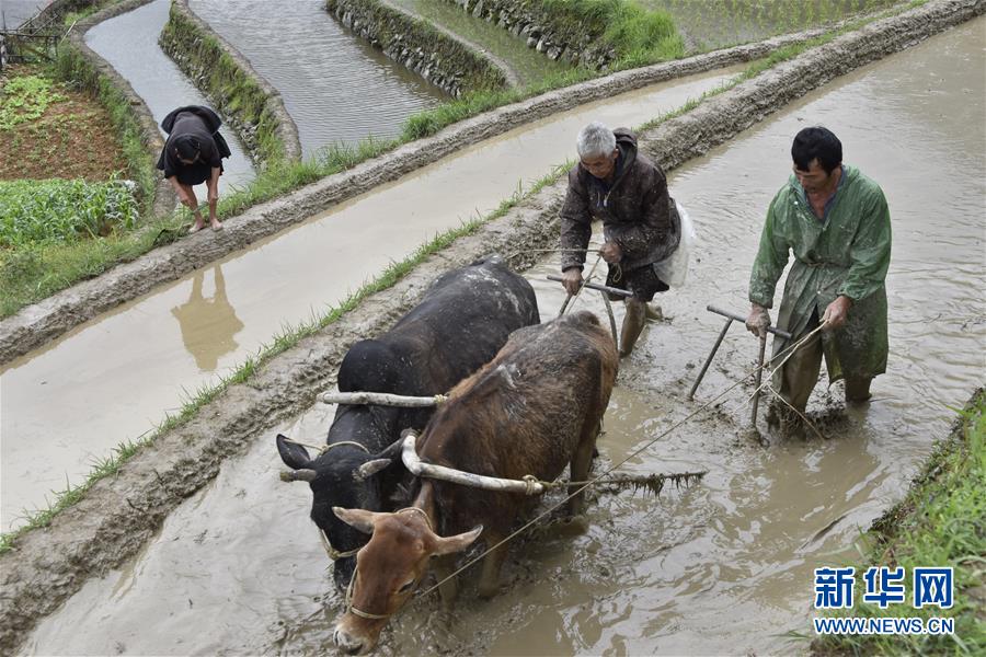 5月26日,貴州省黔東南苗族侗族自治州從江縣加榜鄉(xiāng)加車村的村民在梯田里耕作。 新華社發(fā)(羅京來 攝)