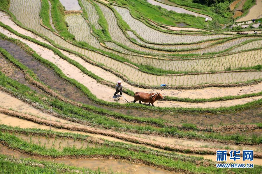 6月2日,在貴州省黔東南苗族侗族自治州榕江縣八開(kāi)鎮(zhèn)黨央村,村民在田間勞作。 新華社發(fā)(李長(zhǎng)華 攝)