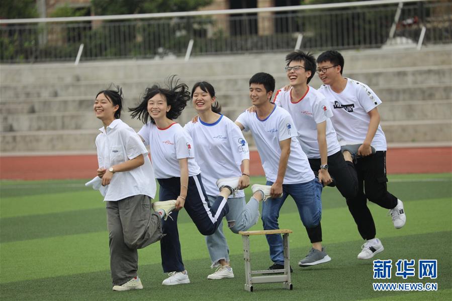 6月2日,在山東省濱州市博興縣第三中學(xué),高三學(xué)生在操場(chǎng)上做游戲放松心情。 新華社發(fā)(陳彬 攝)