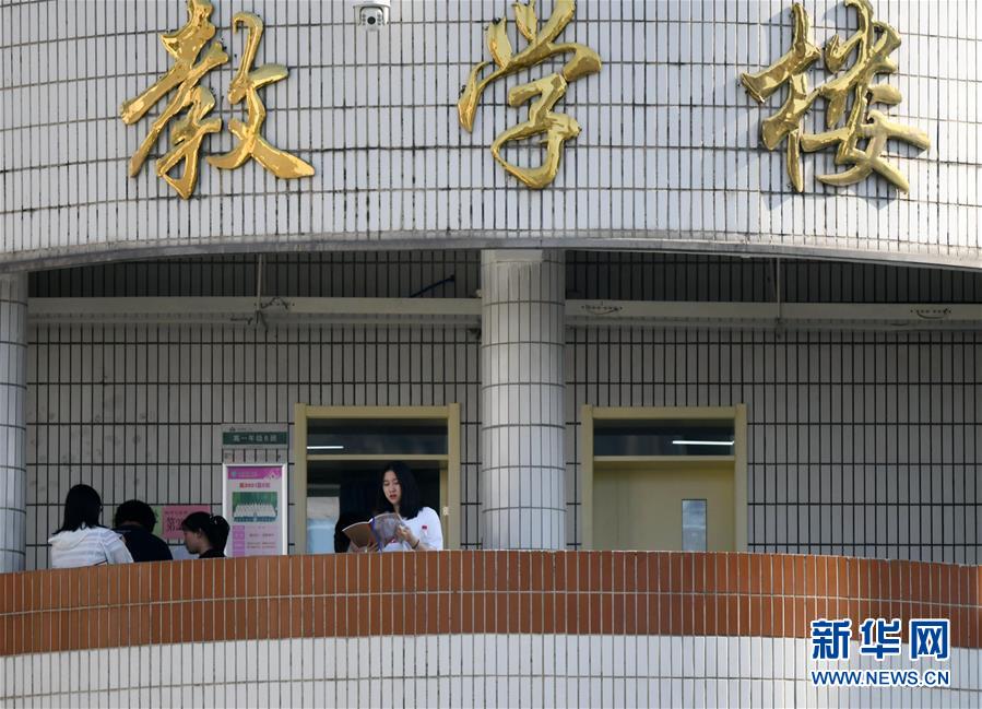 6月7日,在陜西西安市第一中學考點,考生在教室外做最后的復習。 當日,2019年高考拉開帷幕。 新華社記者 李一博 攝