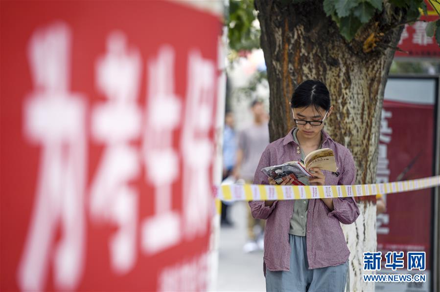 6月7日,在寧夏銀川一中考點,考生在進入考場前復習。 當日,2019年高考拉開帷幕。 新華社發(fā)(馮開華 攝)