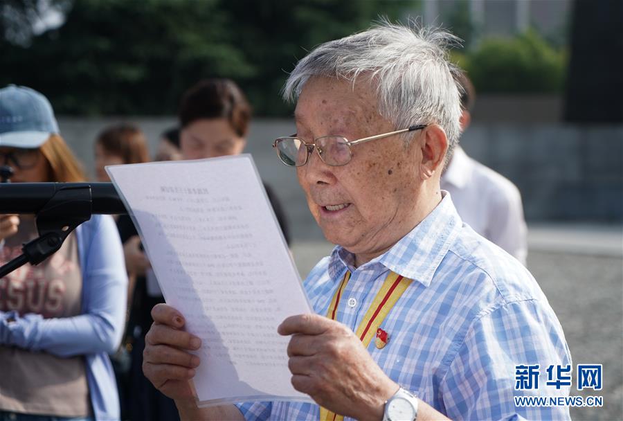 7月7日,抗戰(zhàn)老戰(zhàn)士代表、小學(xué)生們等參加活動。 當(dāng)日,位于南京的侵華日軍南京大屠殺遇難同胞紀(jì)念館舉行活動紀(jì)念全民族抗戰(zhàn)爆發(fā)82周年。 新華社記者 季春鵬 攝