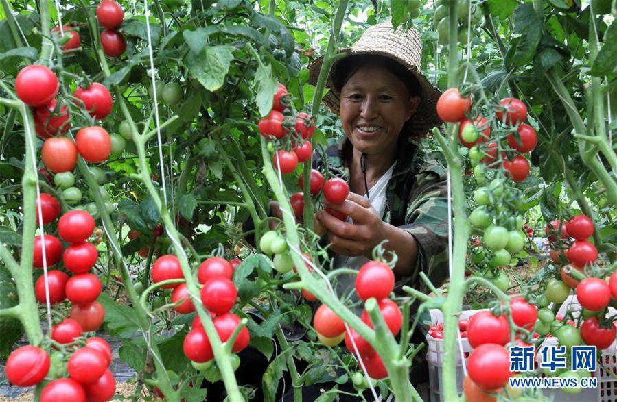 7月11日,在貴州省畢節(jié)市黔西縣中建鄉(xiāng)民主村圣女果種植基地,村民在采摘圣女果。 新華社發(fā)(史開心 攝)