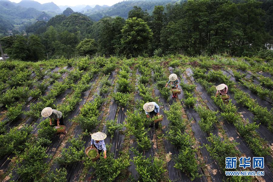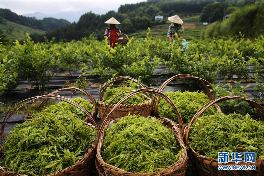 7月11日,村民在重慶市黔江區(qū)鄰鄂鎮(zhèn)五馬頂社區(qū)藤茶基地采摘藤茶。 新華社發(fā)(楊敏 攝)