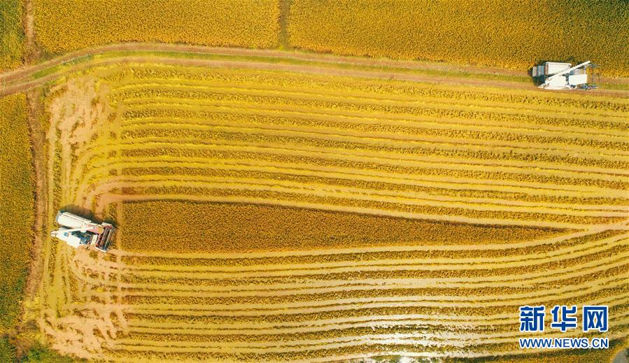 7月11日,在江西省吉安市泰和縣塘洲鎮(zhèn)龍口村,農(nóng)民駕駛收割機(jī)收割早稻(無人機(jī)拍攝)。 新華社發(fā)(鄧和平 攝) |