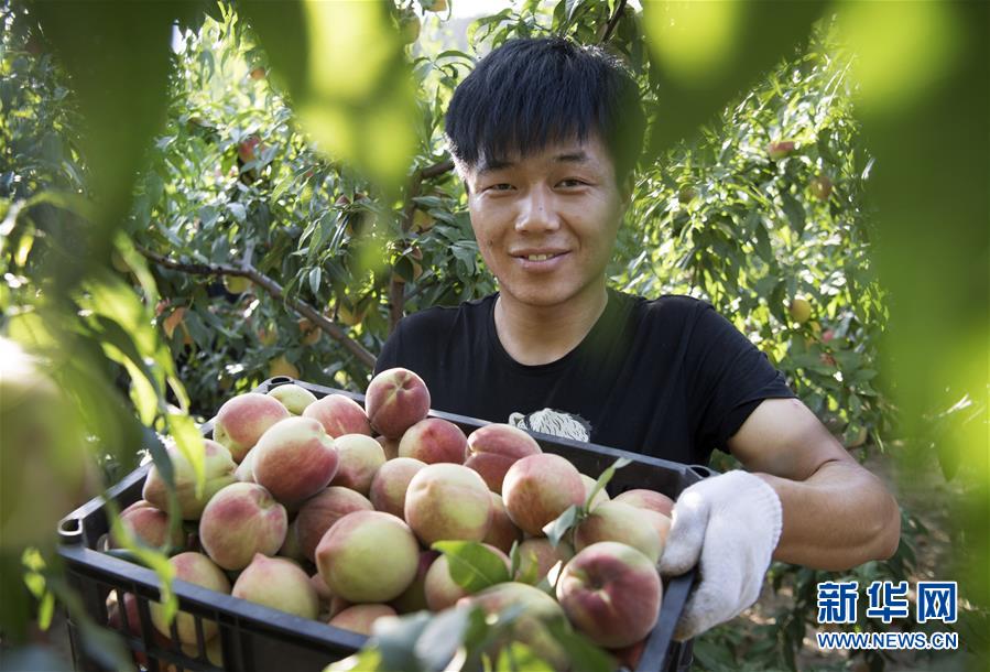 8月15日,青陽(yáng)岔鎮(zhèn)高石崖村村民張錦麗在采摘桃子。她家種植15畝桃園,年收入15萬(wàn)元以上。新華社記者 陶明 攝