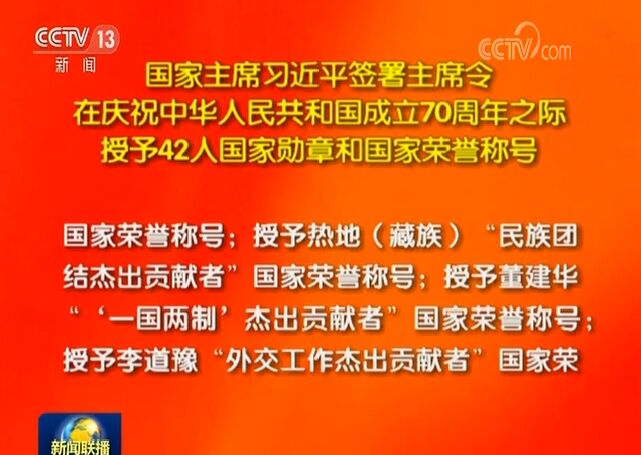 新華社北京9月17日電 國家主席習(xí)近平17日簽署主席令,根據(jù)十三屆全國人大常委會第十三次會議17日下午表決通過的全國人大常委會關(guān)于授予國家勛章和國家榮譽稱號的決定,授予42人國家勛章、國家榮譽稱號。