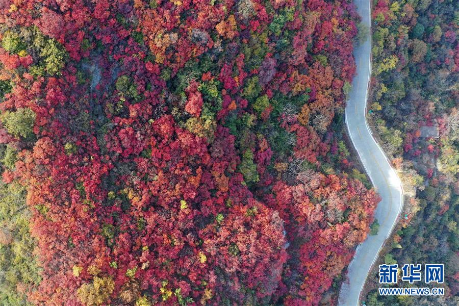 這是11月2日無(wú)人機(jī)拍攝的河南省鞏義市竹林鎮(zhèn)長(zhǎng)壽山紅葉景色。 金秋時(shí)節(jié),河南省鞏義市竹林鎮(zhèn)長(zhǎng)壽山的紅葉進(jìn)入觀賞期,吸引游人前來(lái)休閑觀光。 新華社記者 馮大鵬 攝
