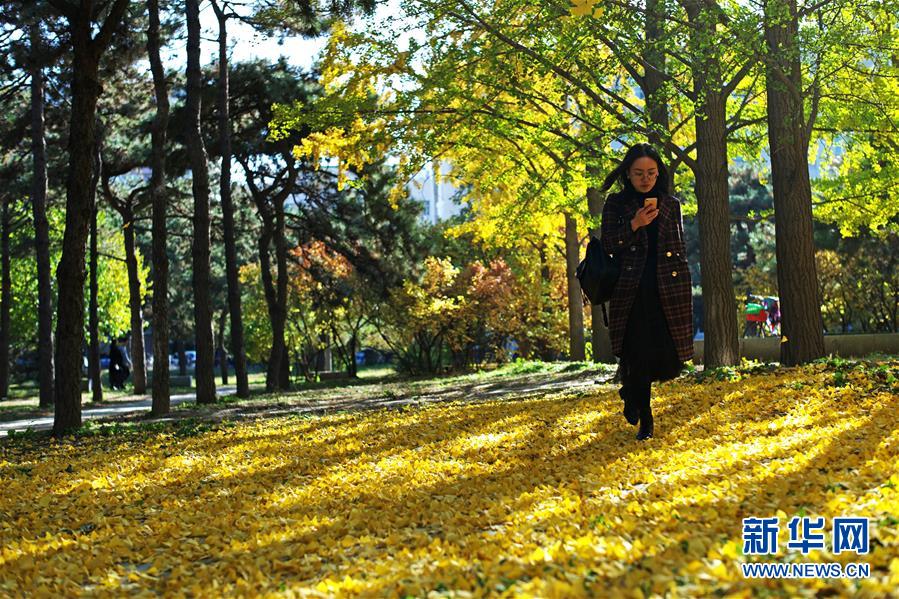 11月7日,一名女生在清華大學(xué)清華路上留影。秋日午后的清華大學(xué)校園色彩斑斕,宛如油畫,讓人流連忘返。 新華社記者 李京 攝