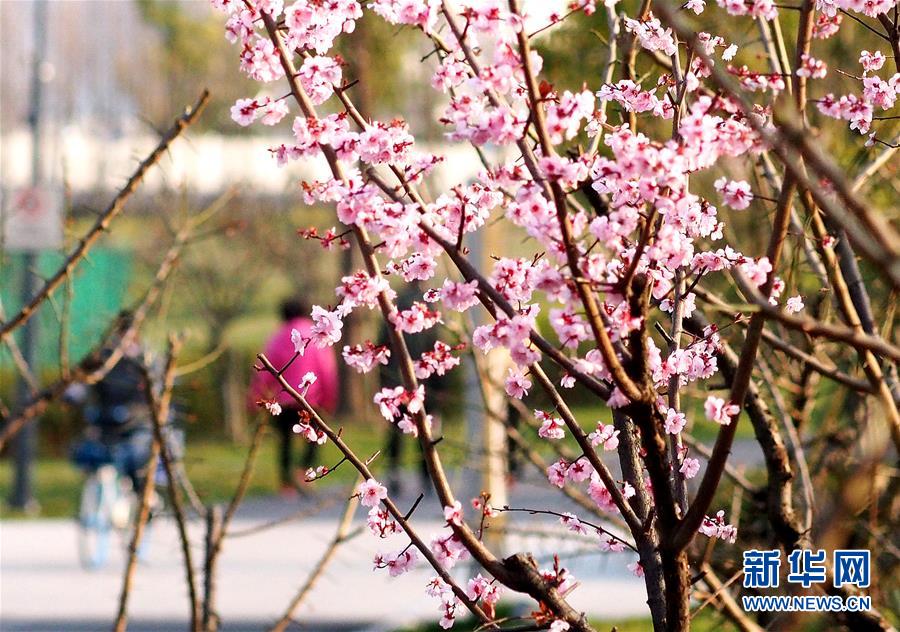 3月15日,游客在上海后灘濕地公園賞花。 新華社記者 陳飛 攝