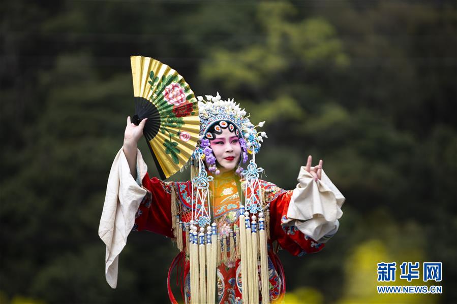 3月16日,演員在李坑村的“花田音樂會”上表演戲曲。