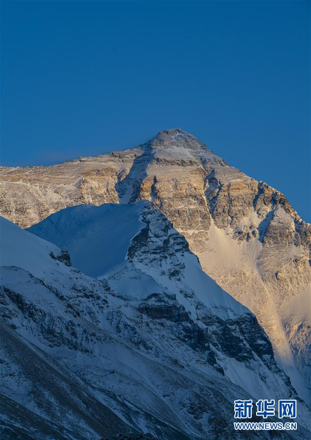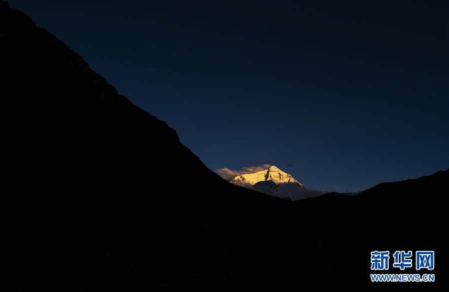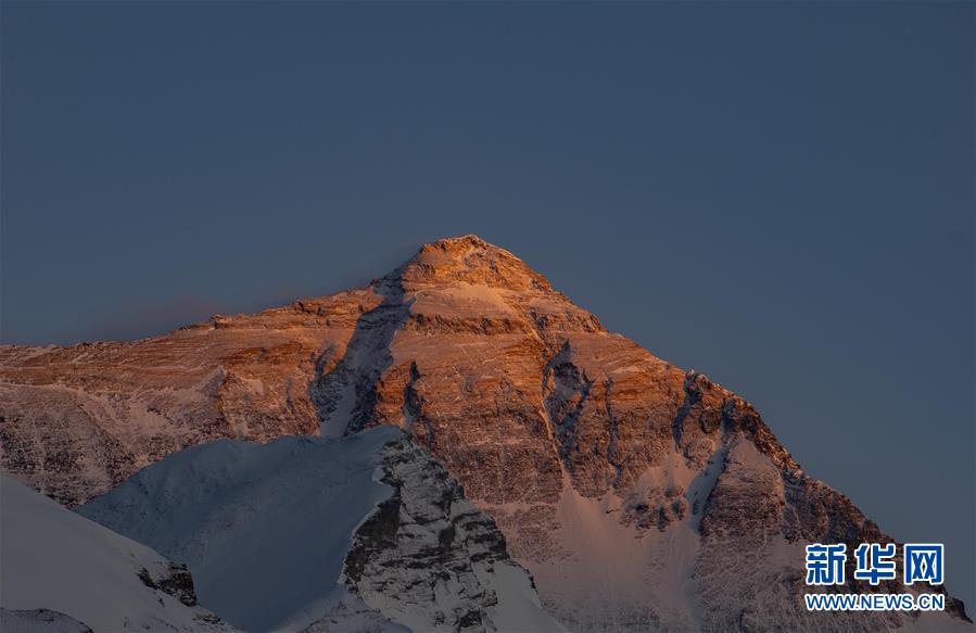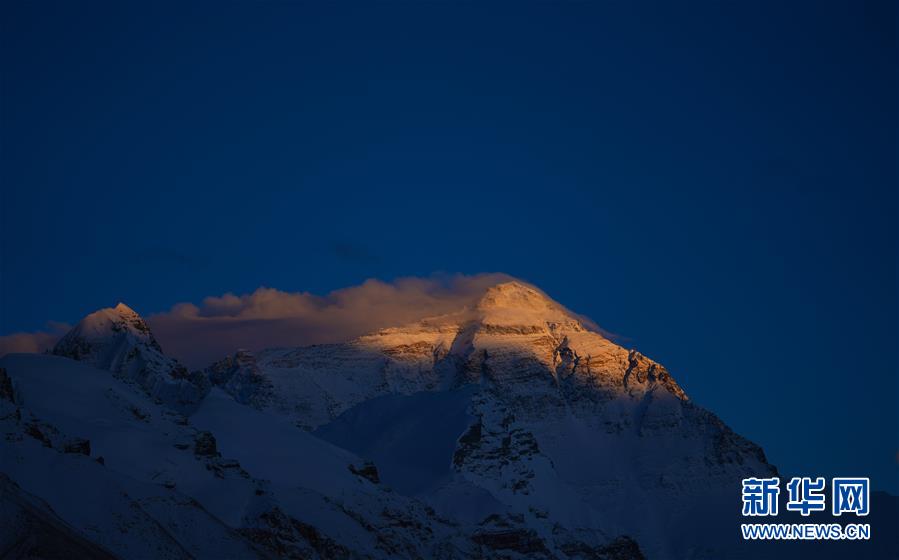 這是5月3日拍攝的夕陽下的珠峰。 世界第一高峰珠穆朗瑪峰終年積雪,頂峰云霧繚繞,美不勝收。 新華社記者 普布扎西 攝