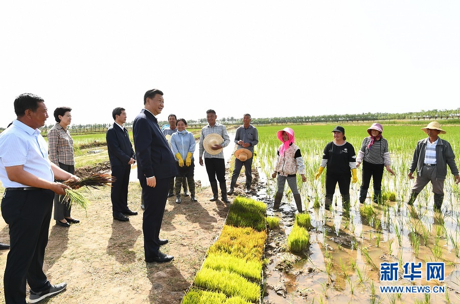 6月8日至10日,中共中央總書(shū)記、國(guó)家主席、中央軍委主席習(xí)近平在寧夏考察。這是6月9日下午,習(xí)近平在銀川市賀蘭縣稻漁空間鄉(xiāng)村生態(tài)觀光園,同正在勞作的村民親切交談。 新華社記者 謝環(huán)馳 攝