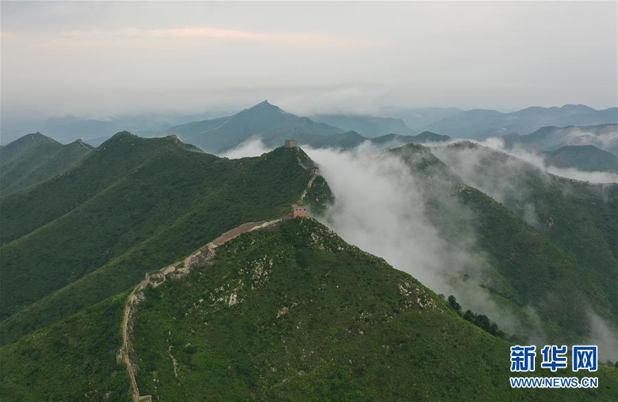 8月18日拍攝的河北省遷安市楊各莊鎮(zhèn)徐流口村段的長城景色(無人機照片)。 當日,一場降雨過后,遷安市徐流口村段的長城云霧繚繞,景色如畫。 新華社記者 李繼偉 攝