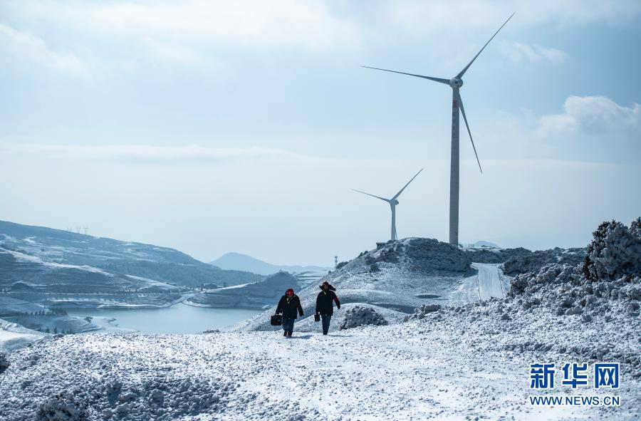 六盤水供電局輸電所巡檢2班工作人員在四格風(fēng)電場(chǎng)開展特巡特維工作(1月12日攝)。