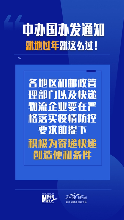 當(dāng)前,境外新冠肺炎疫情持續(xù)蔓延,我國局部地區(qū)聚集性疫情和零星散發(fā)病例不斷出現(xiàn)。春節(jié)假期非必要不流動,有利于減少疫情傳播風(fēng)險。針對因疫情防控需要就地過年群眾增加的新情況,中共中央辦公廳、國務(wù)院辦公廳近日印發(fā)了《關(guān)于做好人民群眾就地過年服務(wù)保障工作的通知》。