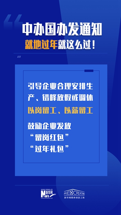 不論在哪過年,就地過年也要過好年。為積極營造就地過年良好氛圍,此次兩辦印發(fā)的通知也特別提出:“密切關(guān)注群眾就地過年的熱點問題,及時回應(yīng)人民群眾關(guān)切。”