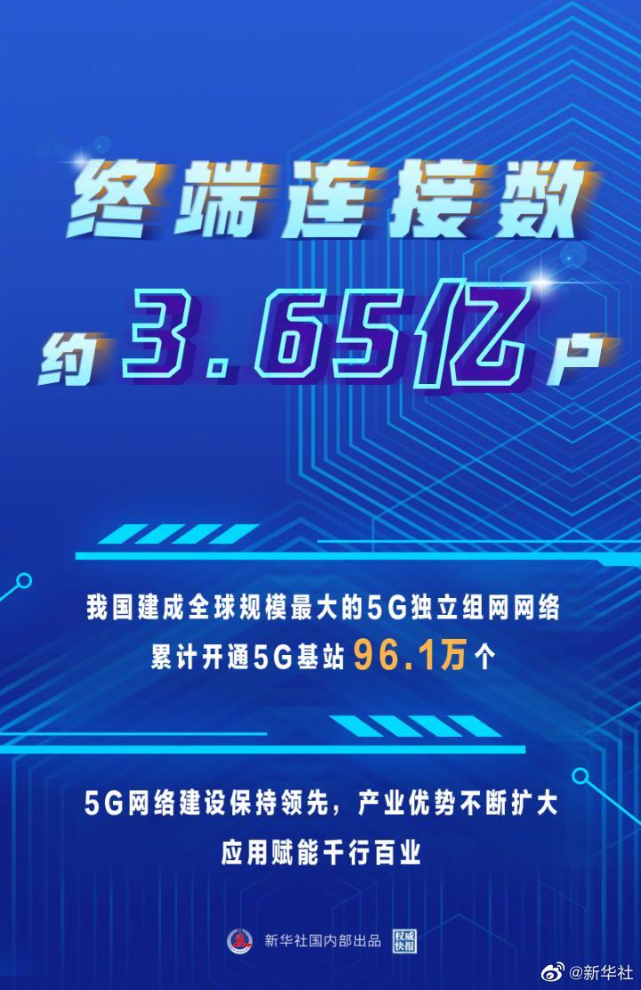 記者從16日國新辦召開的發(fā)布會(huì)上了解到,我國已建成全球規(guī)模最大的5G獨(dú)立組網(wǎng)網(wǎng)絡(luò),累計(jì)開通5G基站96.1萬個(gè),5G終端連接數(shù)約3.65億戶。5G網(wǎng)絡(luò)建設(shè)保持領(lǐng)先、產(chǎn)業(yè)優(yōu)勢(shì)不斷擴(kuò)大、應(yīng)用賦能千行百業(yè)。(記者張辛欣,海報(bào)設(shè)計(jì)賈伊寧)