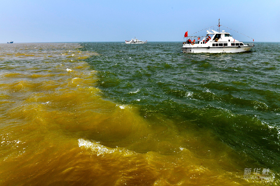 黃河匯入渤海,形成獨特的水面分界現(xiàn)象(2021年5月13日攝)。