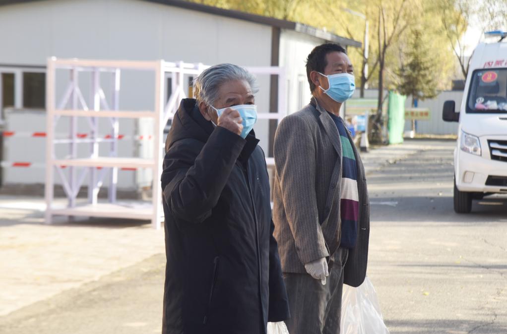10月31日,內(nèi)蒙古本輪疫情首批8名本土患者治愈后離開負(fù)壓病房樓。新華社記者 恩浩 攝