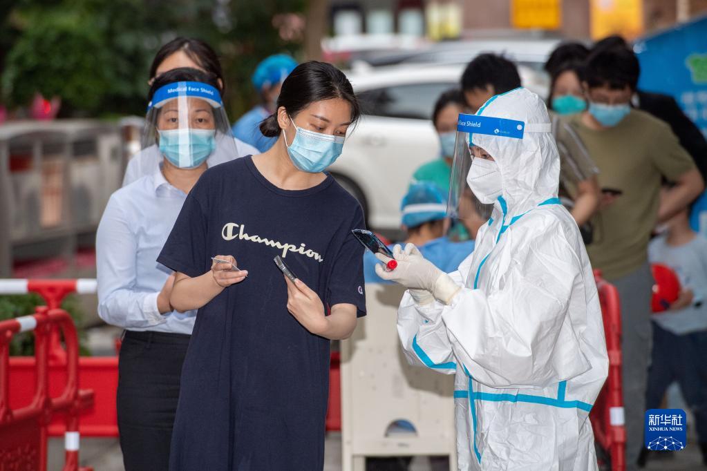 3月16日,深圳市福田區(qū)明月花園小區(qū)的防疫工作人員為準(zhǔn)備做核酸檢測(cè)的居民核對(duì)信息。新華社發(fā)(儲(chǔ)焱 攝)