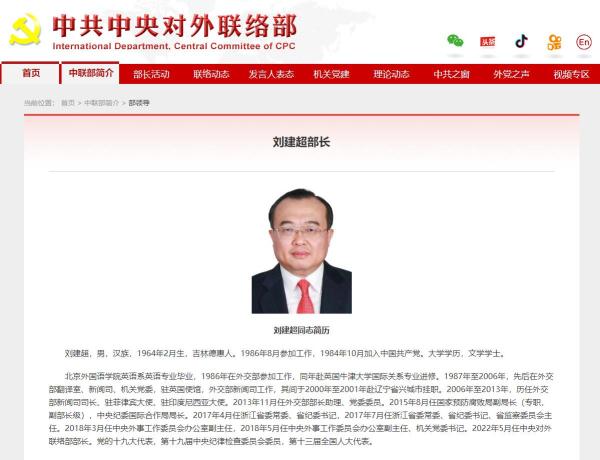 6月2日,中共中央對(duì)外聯(lián)絡(luò)部召開(kāi)干部大會(huì),中央組織部副部長(zhǎng)、中央編辦主任李小新同志出席會(huì)議,宣布中共中央決定,劉建超同志任中央對(duì)外聯(lián)絡(luò)部部長(zhǎng),宋濤同志不再擔(dān)任中央對(duì)外聯(lián)絡(luò)部部長(zhǎng)。