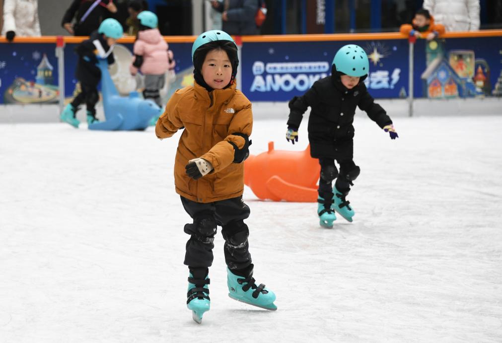 2024年1月13日,小朋友在中糧·祥云小鎮(zhèn)第九屆冰雪季活動中體驗(yàn)滑冰。新華社記者 任超 攝