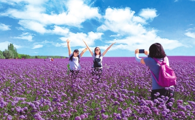 游人在金昌紫金花海拍照留影。近年來(lái),金昌市大力發(fā)展香草花卉文化旅游產(chǎn)業(yè),推動(dòng)了經(jīng)濟(jì)轉(zhuǎn)型升級(jí)。本報(bào)記者劉興元