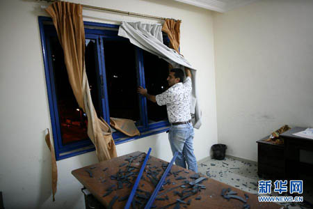 8月19日,新華社雇員正在查看辦公室受損情況。為報復(fù)以色列南部系列襲擊事件,以色列軍隊18日和19日凌晨向加沙地帶多處發(fā)動空襲,造成至少6人死亡。位于哈馬斯安全據(jù)點附近的新華社加沙分社辦公室受到波及,外墻玻璃破碎,門窗脫落,所幸未造成人員傷亡。