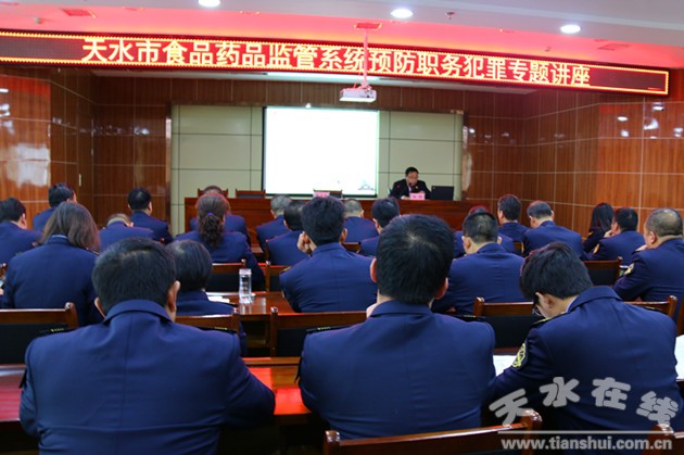 10月30日下午,天水市食品藥品監(jiān)管系統(tǒng)舉行預防職務犯罪專題講座。市食品藥品監(jiān)管局及四個直屬單位全體職工共100余人參加了專題講座。