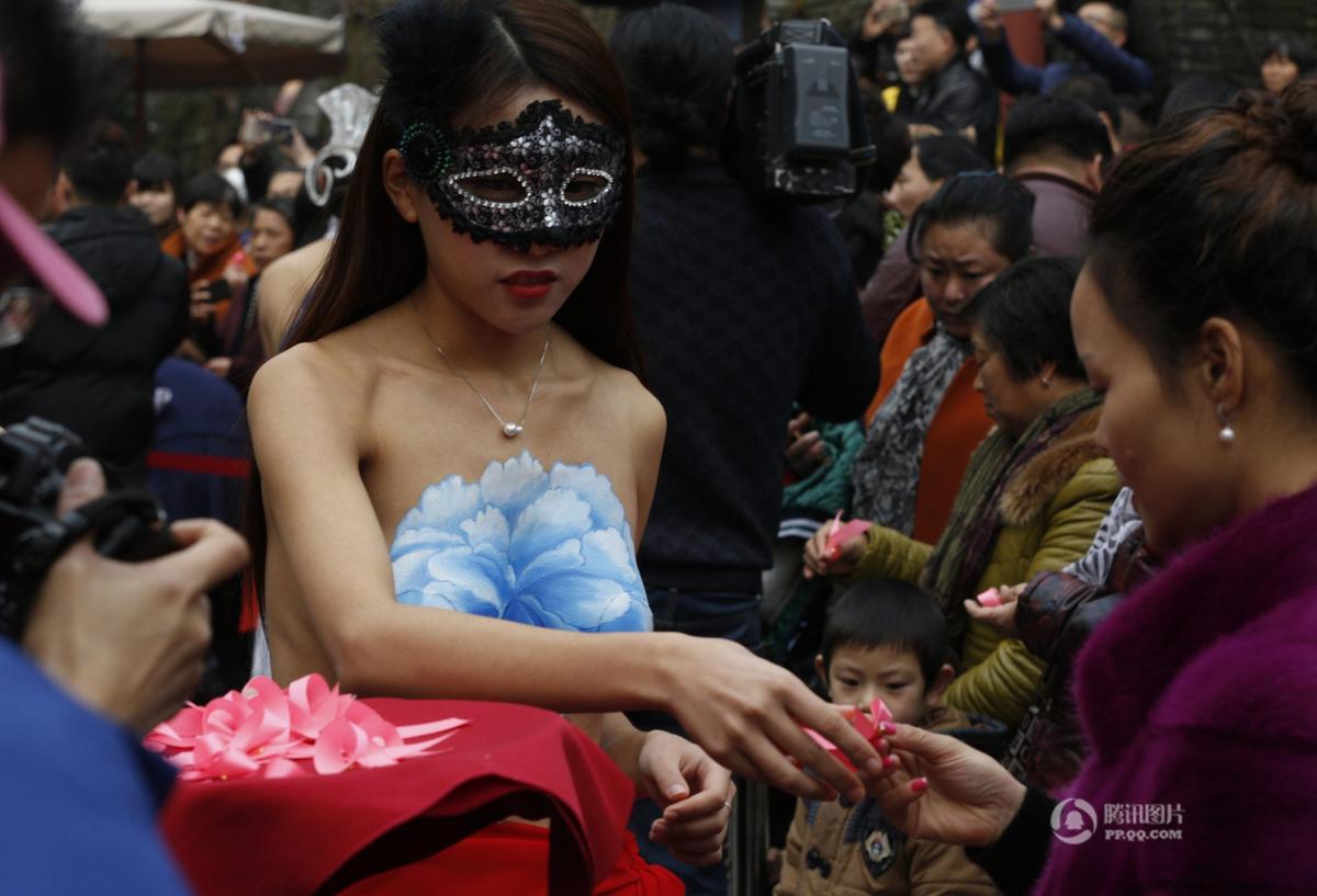杭州美女裸身彩繪 呼吁關注乳腺健康(組圖)