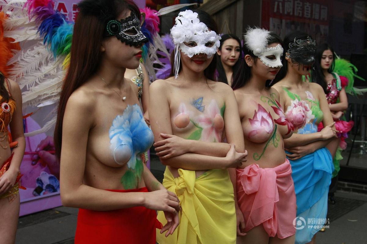 杭州美女裸身彩繪 呼吁關(guān)注乳腺健康(組圖)