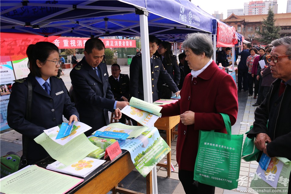 3月15日上午,天水市食品藥品監(jiān)督管理局在天水市中心廣場參加了由市委宣傳部、市精神文明辦、市工商局、市消協(xié)聯(lián)合主辦的“3·15國際消費(fèi)者權(quán)益日”大型宣傳活動(dòng)。