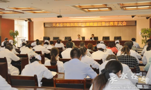 5月6日下午,天水市中醫(yī)醫(yī)院利用“黨員固定活動日”以全院黨員大會的形式組織開展黨風(fēng)廉政建設(shè)警示教育。特邀市人大教科文衛(wèi)委員會主任劉小平,作了題為“目前醫(yī)療衛(wèi)生系統(tǒng)黨風(fēng)廉政建設(shè)面臨的形勢和任務(wù)”的專題報告。會議由市衛(wèi)計委紀(jì)委書記成科峰主持,該院紀(jì)委書記焦三童傳達了中央和省、市有關(guān)黨風(fēng)廉政建設(shè)工作會議精神。醫(yī)院領(lǐng)導(dǎo)班子成員、中層干部、全體黨員共計120余人參加了會議。