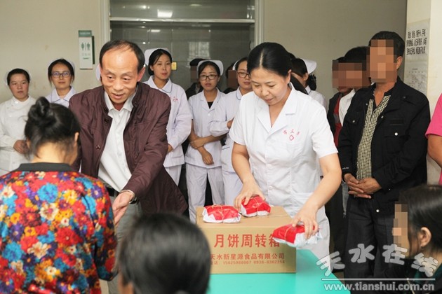 中秋佳節(jié)是我國僅次于春節(jié)的第二大傳統(tǒng)節(jié)日,是全家團圓、闔家歡樂的日子,但仍在住院的患者由于治療不能回家過節(jié),為讓住院患者在醫(yī)院度過一個安樂祥和的中秋佳節(jié),9月14日中秋前夕,天水市第三人民醫(yī)院院領(lǐng)導(dǎo)分別來到各病區(qū),代表醫(yī)院親切看望慰問住院患者,并將代表團圓和平安的中秋月餅和蘋果等慰問品親手送到患者手中,送上對患者的問候和祝福。