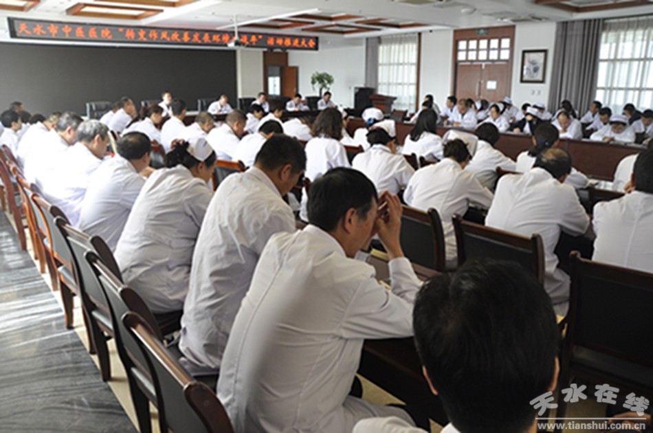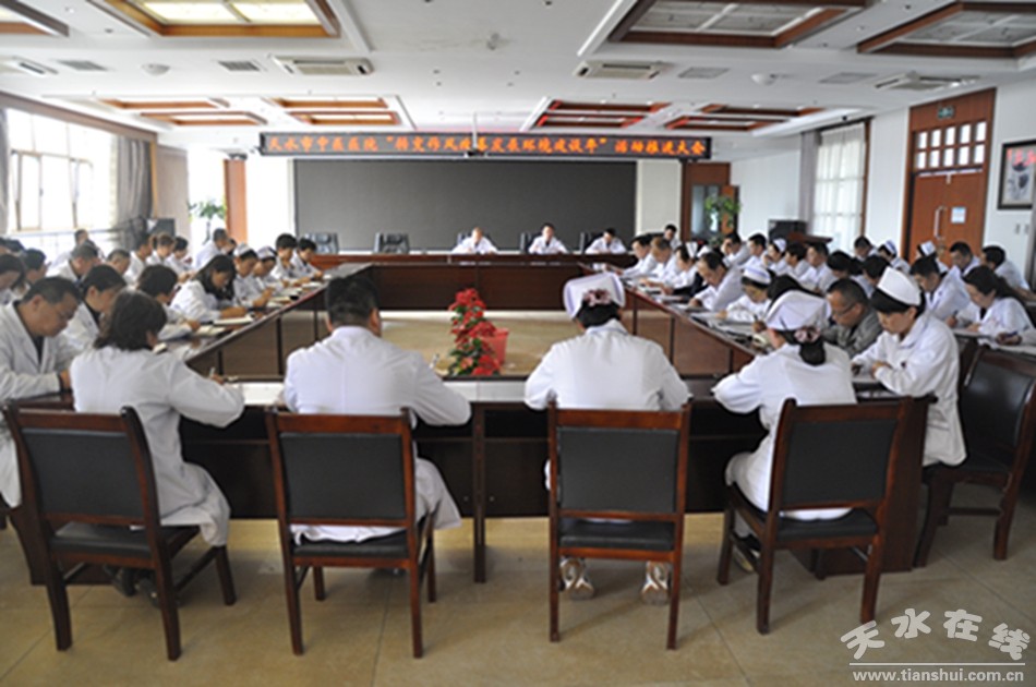 5月11日,天水市中醫(yī)醫(yī)院黨委組織召開“轉(zhuǎn)變作風改善發(fā)展環(huán)境建設年”活動推進大會,傳達了作風建設年相關督查文件精神,進一步細化安排了醫(yī)院作風建設年活動。醫(yī)院領導班子成員、各黨支部書記、各科室負責人、科秘書、護士長近90人參加會議。院黨委副書記、院長王志剛主持會議。