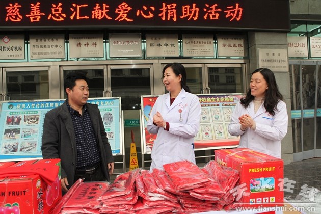 慈善讓愛升華讓溫暖持久,愛心讓我們在寒冷中倍感溫暖。1月24日上午,云川慈善總匯走進天水市第三人民醫(yī)院,為住院的精神障礙患者捐贈了5箱蘋果、5箱桔子和100條圍巾,為患者送來了溫暖,為社會獻出了一片愛心。醫(yī)院相關領導及護理部主任、辦公室主任參加了捐贈儀式,并現(xiàn)場為患者家屬發(fā)放愛心物資。