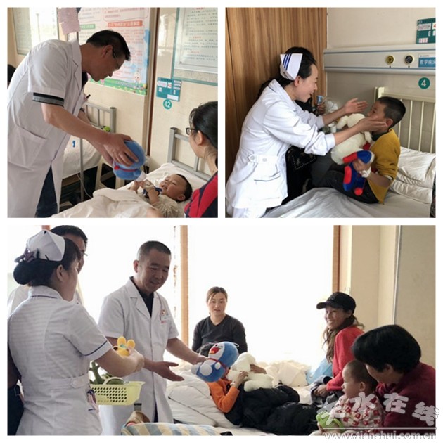 主題系列活動一,醫(yī)院黨委書記李曉峰、副院長楊春、護理部主任蔣濤帶領兒科醫(yī)護人員為所有住院患兒送去了小禮物,并祝福小朋友“六一”兒童節(jié)快樂,早日恢復健康,健康成長,快樂每一天!